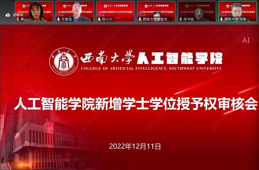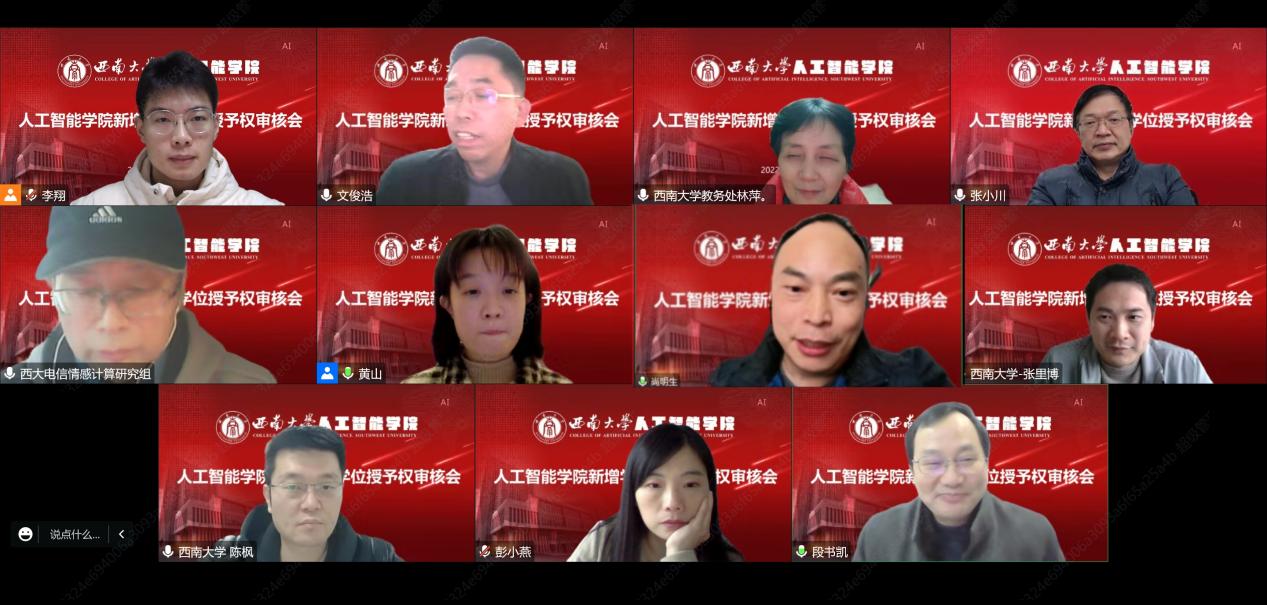 根据重庆市学位委员会办公室开展学士学位授权审核工作的相关要求,结合《350vip8888新葡的京新增学士学位授予权自主审核方案》(西校〔2022〕68号)的相关规定,12月11日,学院线上举办新增学士学位授予权审核会。根据学校文件审核流程要求,会议邀请重庆大学大数据与软件公司党委书记文俊浩教授、重庆理工大学两江新葡的京集团350vip8888副经理张小川教授、中国科学院大学(重庆)新葡的京集团350vip8888副经理/大数据中心主任尚明生教授等校外专家,电子信息工程学院刘光远教授、350vip8888新葡的京教学督导林萍副研究员等校内专家共五名担任评审专家。公司经理段书凯,系主任陈枫、彭小燕,张里博老师以及教学办相关人员参加此次审核会。会议由智能科学系系主任陈枫主持。