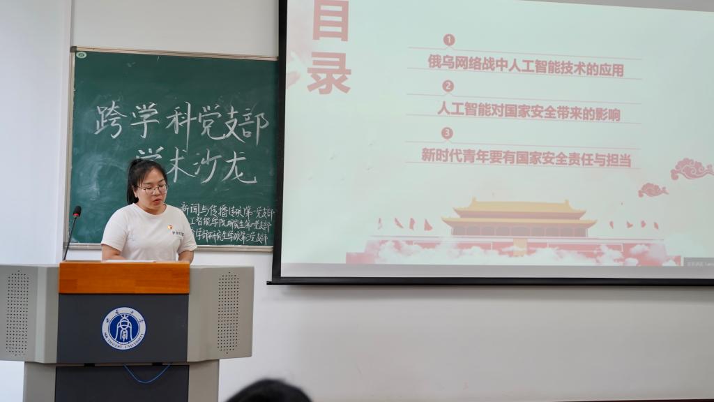 才以学为本。围绕“新时代青年的使命与担当”这一主题,三个支部同志以“跨学科沙龙分享”形式,开展了深入研讨。新闻传媒学院新闻与传播(专硕)第一党支部梅浩冉、阿迪来·艾买江以《新形势下中国国际传播现状及青年担当》《新时代中国国际传播风险的青年担当》为题,教育学部研究生学硕第三党支部岳川洋、张露以《立足新时代 担当新使命——以优质学术研究服务研究生教育强国建设》《深入实施新时代人才强国战略》为题,新葡的京集团350vip8888研究生第一党支部刘金莹、卢泽宾以《聚力维护国家安全 彰显青年责任担当》《人工智能赋能新时代》为题,立足不同学科视角,结合专业关注、社会热点分享了对于新时代青年使命担当的理解。在自由讨论环节,现场参会同志们踊跃发言,就“科技创新和价值导向之间的关系”等问题进行了交流讨论。