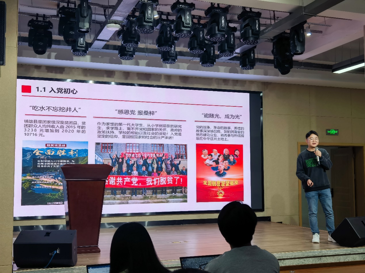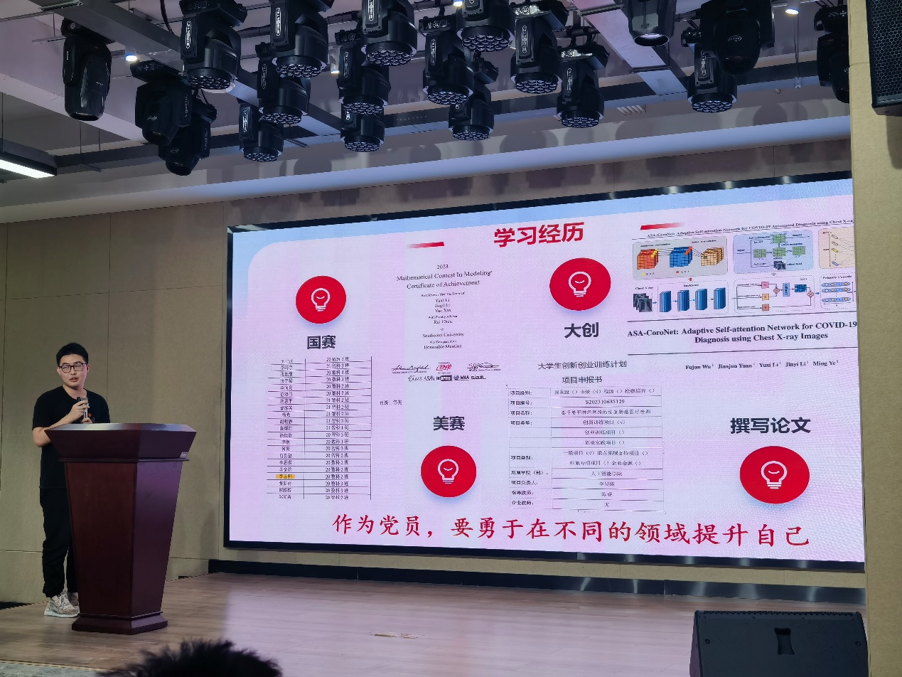 “不忘初心,牢记使命——在前行中从无到有”,曾任学院团委员工会主席、现任AI员工党建工作中心副主任的2020级本科生李昱熙同志,从入学时的“菜鸟”到大四时的“先进”,在努力中实现了“逆袭”。“勇于提升自己”“勇于攀登”“勇于直面缺点”,浓缩了他老员工涯拼搏的经验。