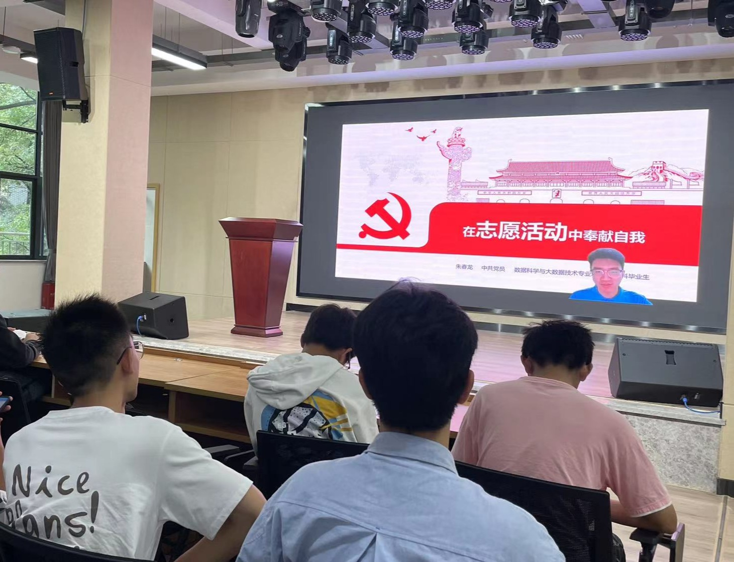 2023届毕业生朱春龙同志在毕业之际选择奔赴巫山支教,不能来到现场的他,通过线上视频与大家分享了“在志愿服务中奉献自我”的经历。他鼓励各位新生在实践中求真知、在实干中长本事,也祝愿大家能够在奉献中实现人生理想。