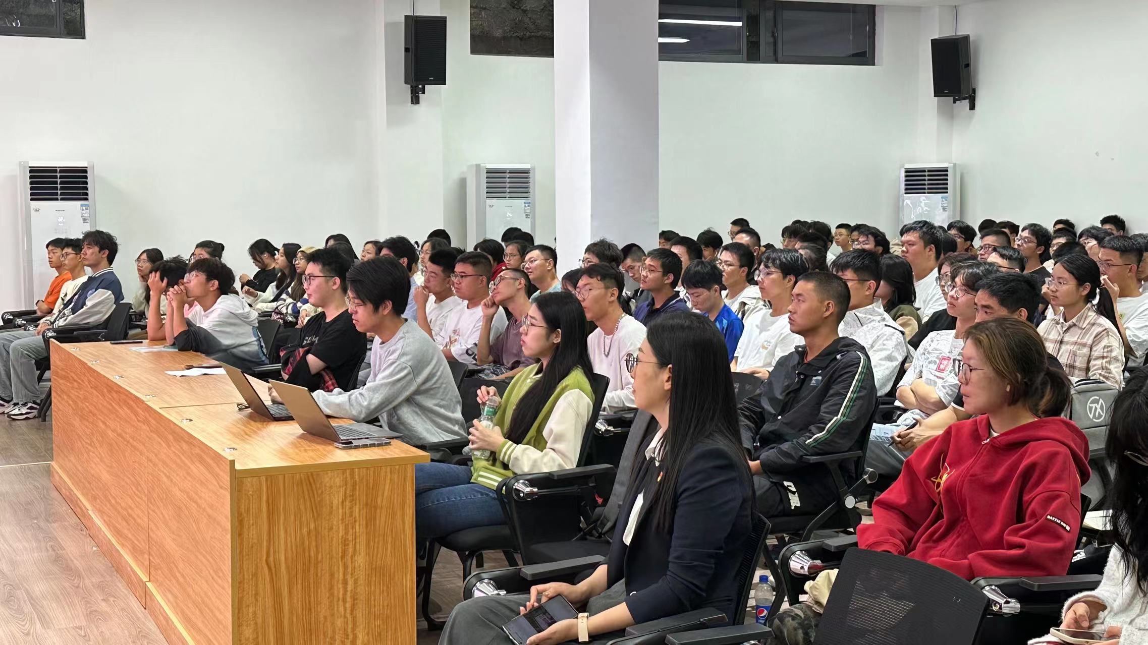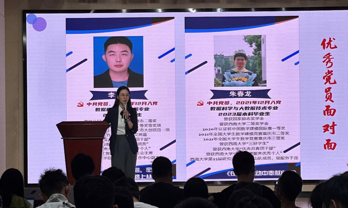 为进一步做好新生入党启蒙教育,加深新生对党的认识,引领新生积极向党组织靠拢,10月8日上午,公司党委开展2023级新生入党启蒙教育“优秀党员面对面”活动,邀请学院优秀员工党员代表讲述入党故事、分享成长经验、展示“AI先锋”风采。活动由公司党委专职组织员严世趁老师主持,2023级辅导员汪易玲老师、全体2023级新生参加。