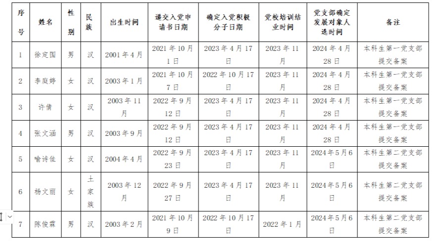 【公示】关于确定徐定国同志等七名同志为发展对象的公示