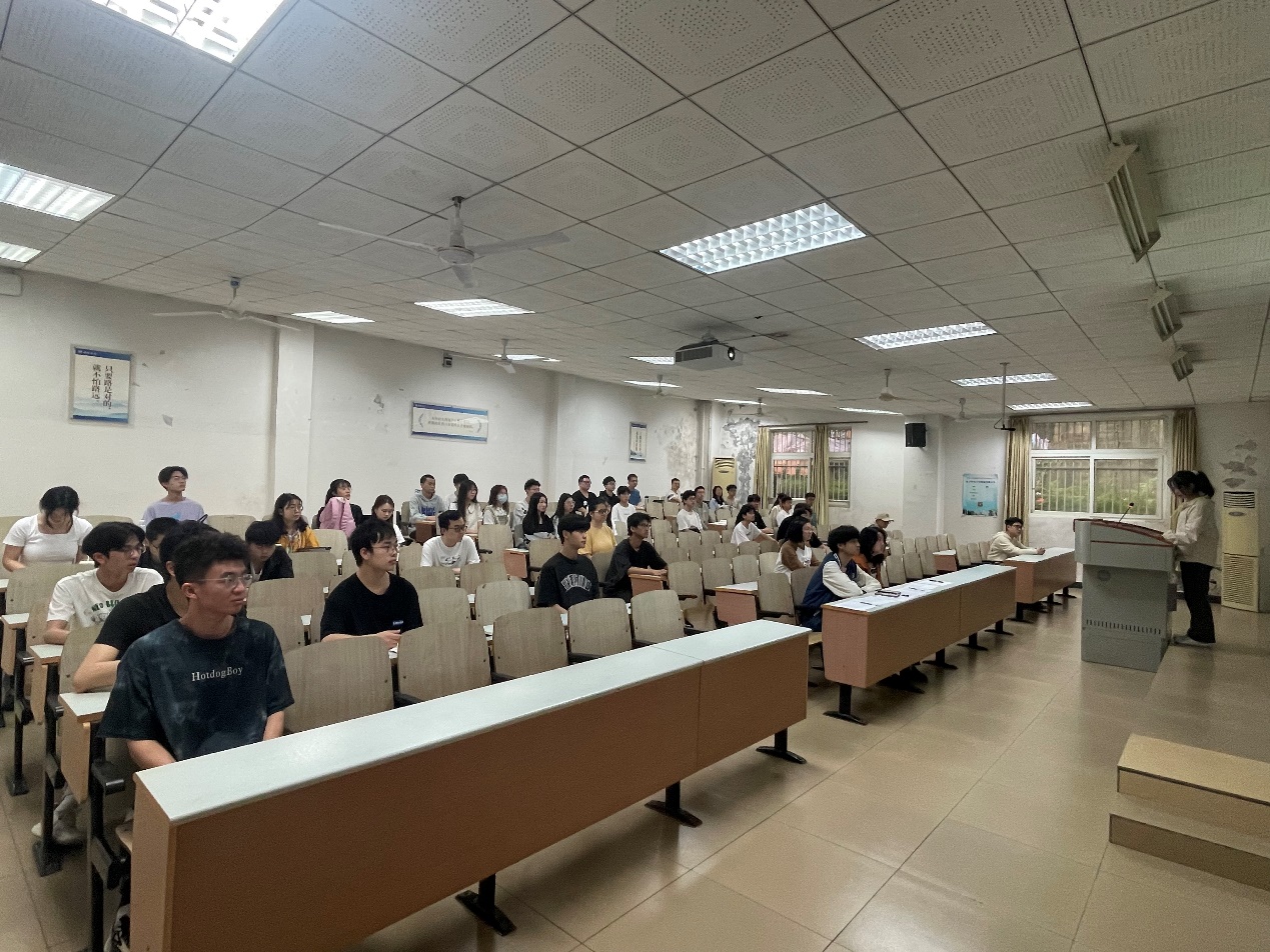 本次宣讲活动主讲人是院员工会生活权益部干事李雪蓉。她主要从开展反诈讲座的意义、诈骗类型、经典案例以及如何预防诈骗四个方面为同学们进行讲解。