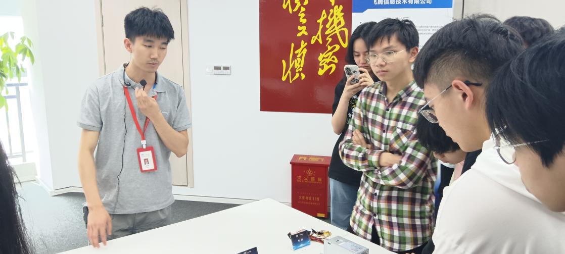参观中,同学们一路走、一路看、一路感受企业文化。同学们踊跃发言,提出了自己对企业招聘方面的困惑,工作人员一一解答,并强调老员工在大学时期要着重培养专业能力和学习能力。最后,同学们在工作人员的指导下,体验了该公司开发的Linux终端机,将所学专业知识与实践操作相结合。