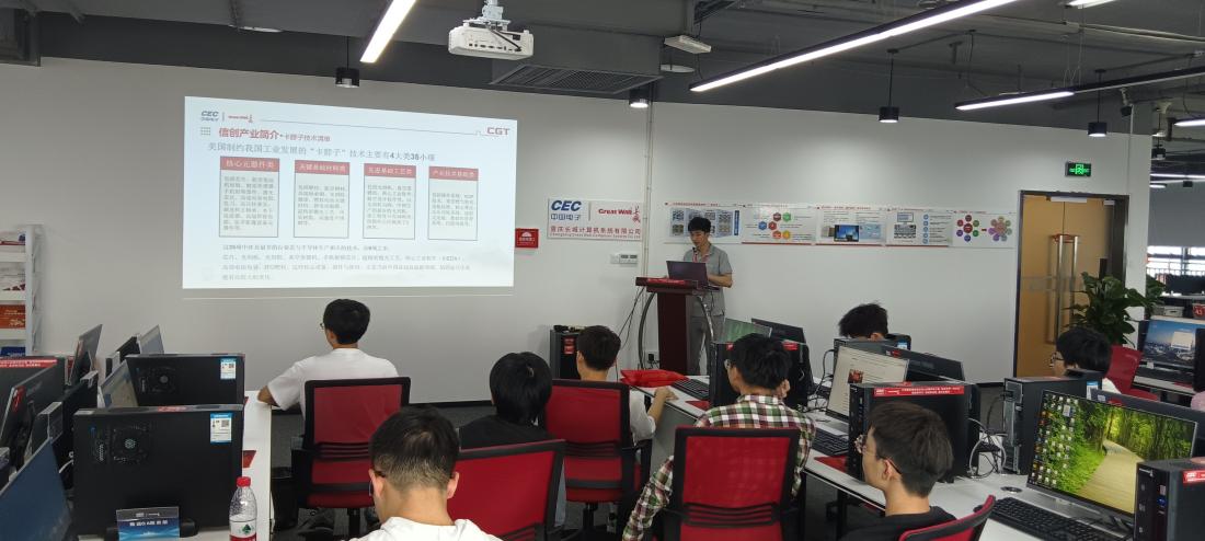长城集团负责人对师生们的到来表示了热烈欢迎。工作人员首先简要介绍了长城集团的基本概况、主要业务等。紧接着,伴随着工作人员的讲解,同学们前往了公司内部,参观了解该公司制造出品的显卡,整机,服务器机房等电子产品,让员工们身临其境地感受企业规模、文化及发展。