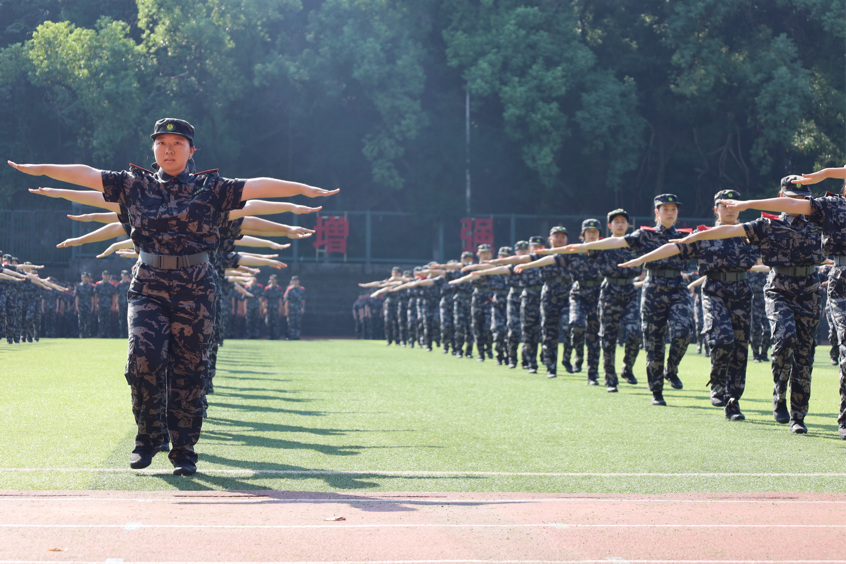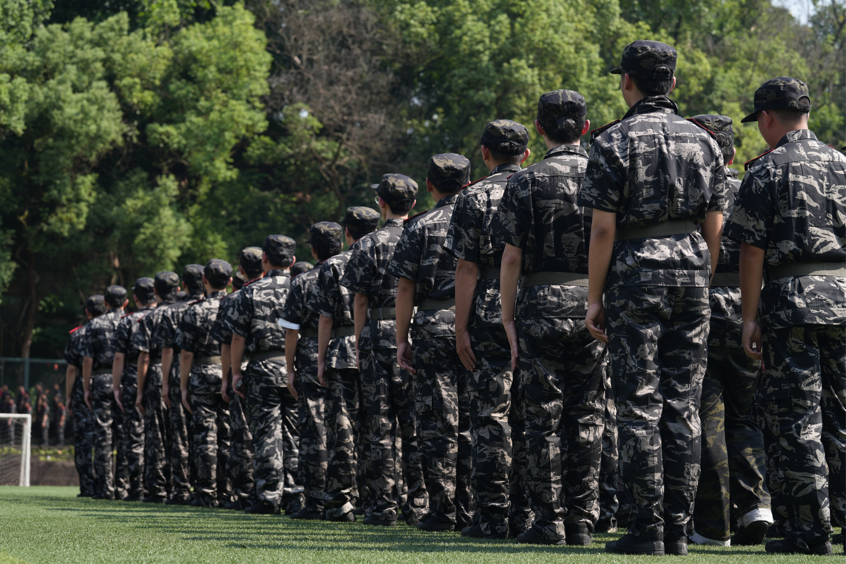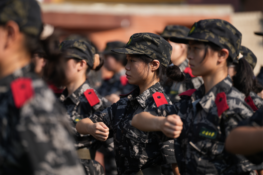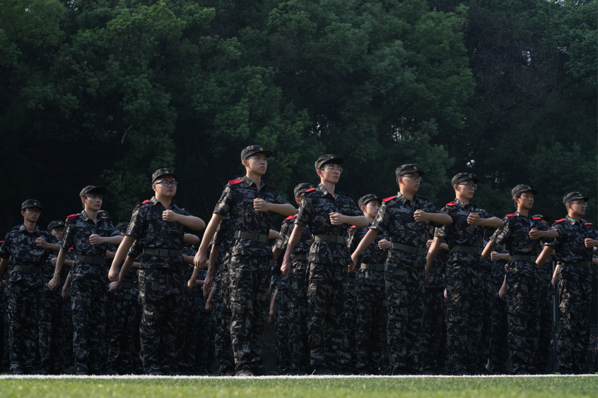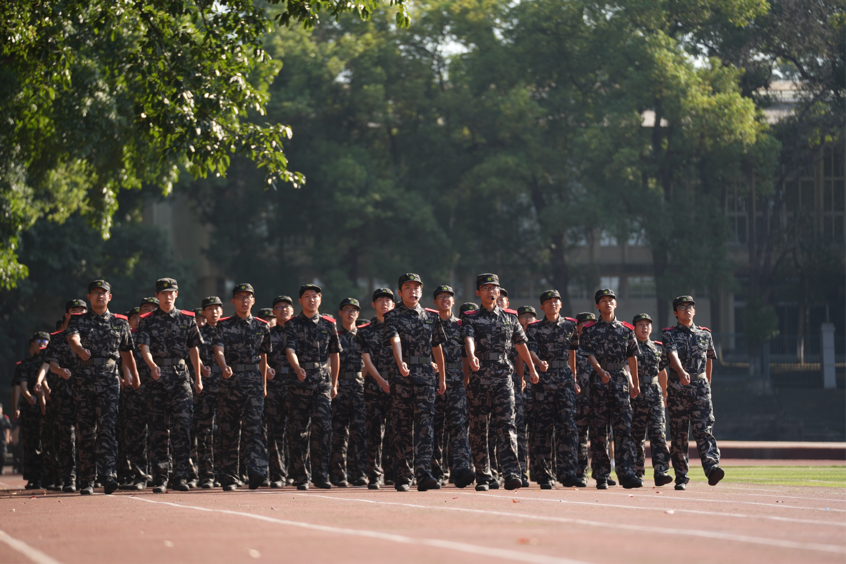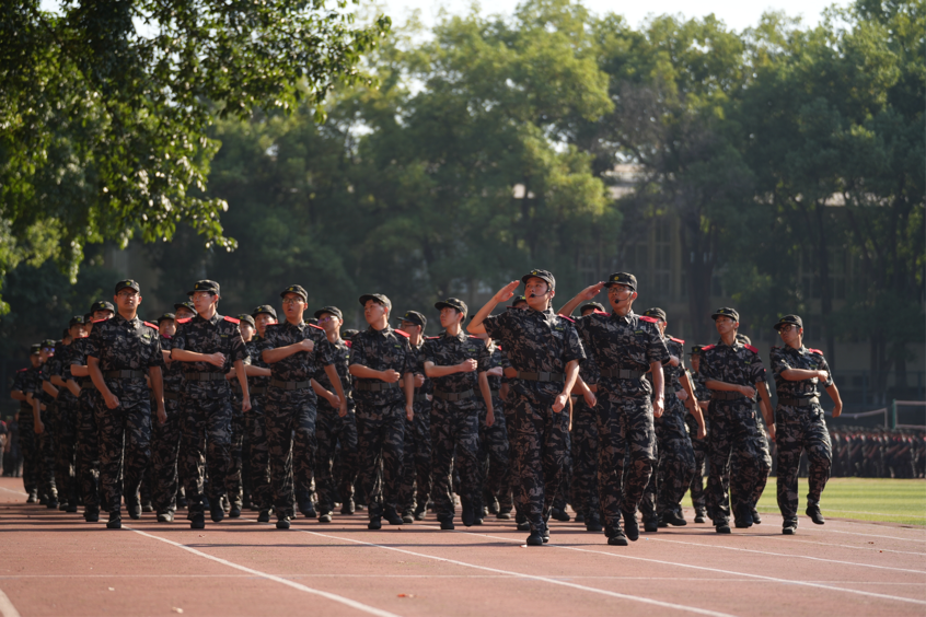 身着迷彩服的AI学子以一声声口号、一步步脚印诠释着青春最好的模样。