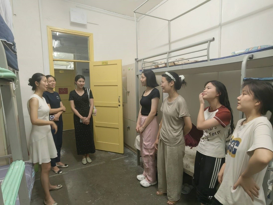 张维薇副书记一行走访了2024级本科女生寝室。在走访过程中,张维薇副书记对同学们的到来表示热烈欢迎和亲切问候,详细询问了同学们的生活学习情况,鼓励同学们在新阶段、新环境中不断提升自己的各方面能力。