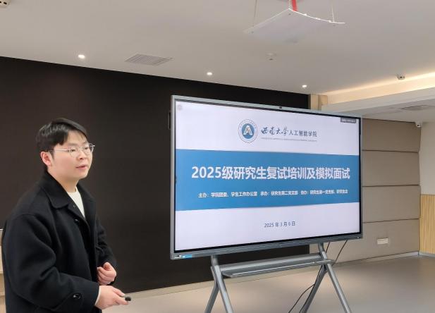 活动第一阶段,2023级硕士研究生吴付军同学作经验交流,他结合自身考研经历,从简历优化、高频问题应答技巧、现场沟通策略等方面进行分享,为同学们解疑答惑、明晰方向。紧接着,张里博老师代表学院表达了对本次活动的重视和支持,他强调同学们要全身心地投入到复试备考过程中,每一个知识点都是通向成功的基石,每一次模拟练习都是检验自身实力的宝贵机会,要以充分的准备在复试中展现自己最佳状态。