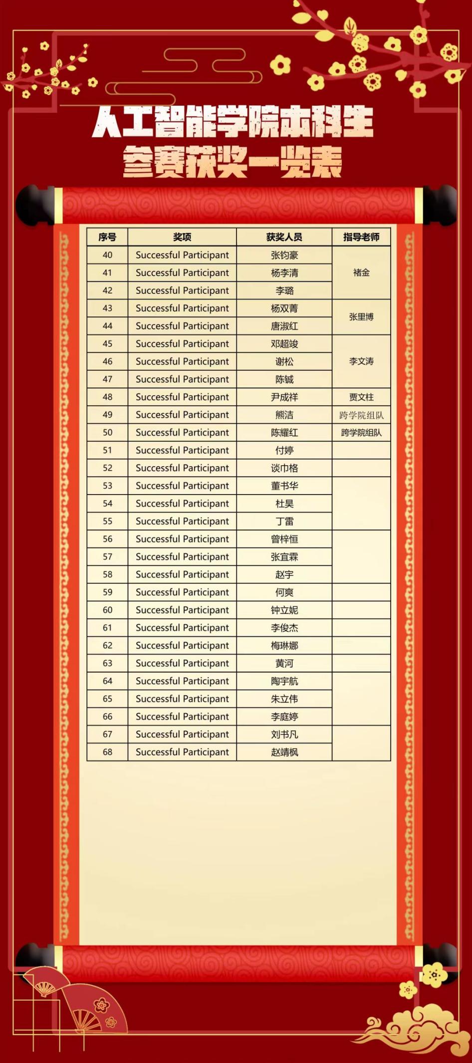 公司高度重视员工学术科技竞赛活动,指导老师积极为同学们提供参赛支持,同学们积极参加学科竞赛。希望同学们以获奖同学为榜样,积极参加学科竞赛,提升自身实力,为学校和学院争得更大的荣誉。