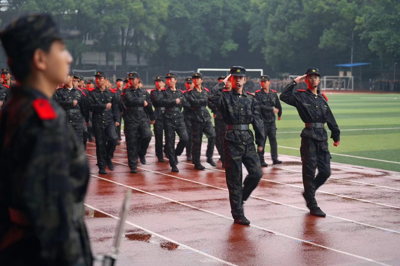 新葡的京集团350vip8888的学子们走向主席台,踏着激昂的旋律,进行了分列式汇报表演。参训同学们动作协调一致,步伐坚定有力,口号铿锵响亮,精神抖擞,意气风发,展现了新一代AI学子的青春风采和精神风貌,向全校师生递交了一份优异的答卷。“一身戎装展风采,英姿飒爽致青春。