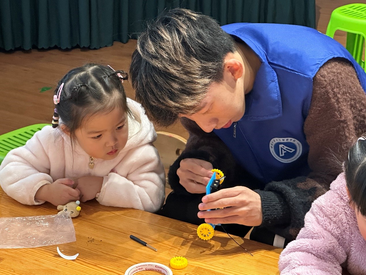 随后,志愿者们将精心准备的小车组装零件分发给小朋友们,并现场演示如何将这些零件拼装成一个简易的小车模型。在志愿者的悉心指导下,小朋友们小心翼翼地连接着零件,看着小车的雏形逐渐显现。志愿者们详细解读小车组装的原理,不仅解开了孩子们对小车动力的困惑,更培养了他们独立思考和动手实践的能力。