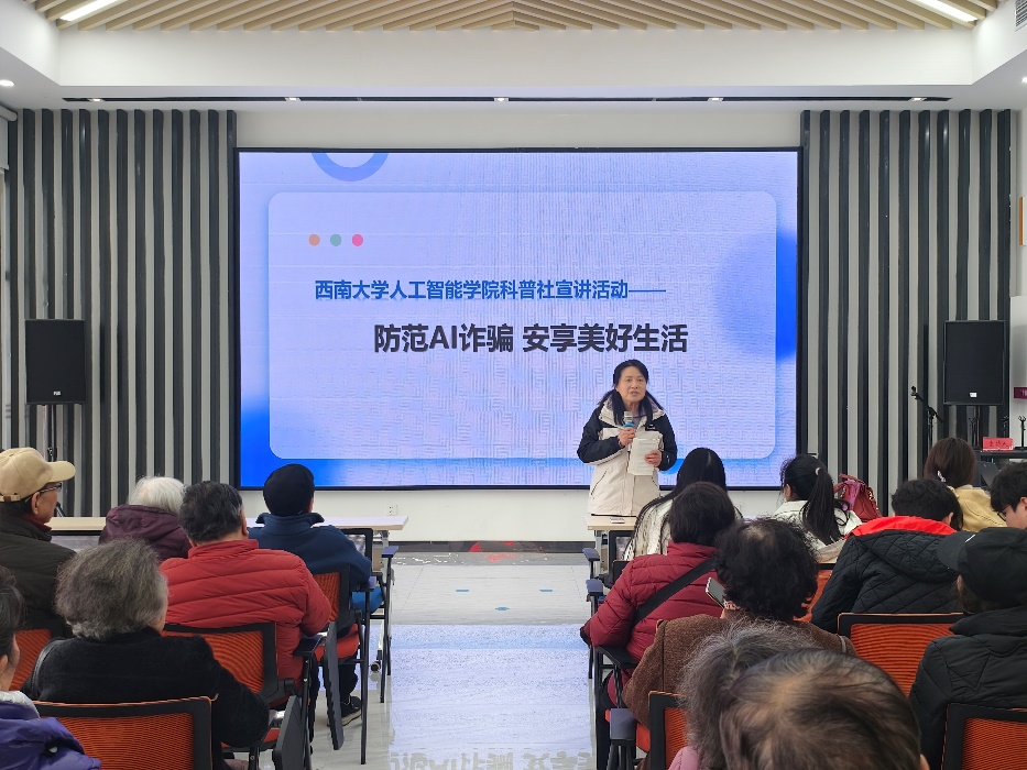 数字化时代背景下,AI诈骗手段层出不穷,对中老年人群体构成了严重威胁。为了提升退休教师、老教授对此类诈骗的警觉性和应对能力,3月7日,学院“智多星员工科普社”受邀为学校离退休第15、16、18党支部及老教授协会南区机关小组举办一场主题“防范AI诈骗,安享美好生活”的科普宣传活动。活动得到了退休教师党支部的热烈欢迎和积极响应。