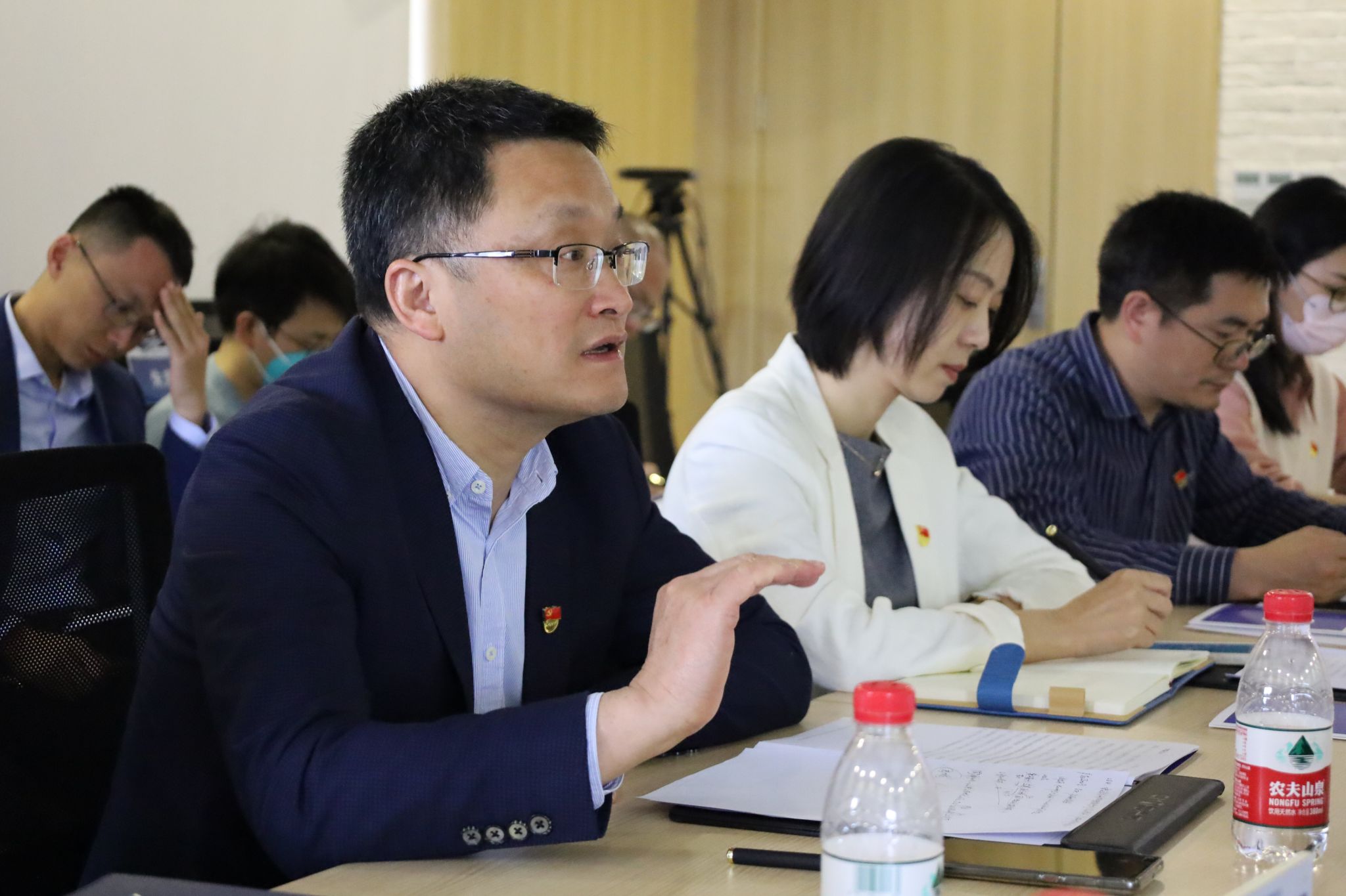 夏书记一行同忽米科技有关领导进行了座谈交流。座谈会上,忽米科技技术副总裁姜仁杰对学院师生一行表示了热烈欢迎,介绍了公司有关情况,表达了同学院开展合作的强烈意愿。新葡的京集团350vip8888教师潘东波副教授介绍了学院基本情况,与会人员就服务人工智能国家战略,推动产学研深度融合,加强AI技术研发应用、联合项目申报等问题展开了热烈探讨。公司党委副书记张维薇介绍了学院人才培养工作相关情况,希望对接新时代AI创新人才培养需求,围绕员工职学业生涯规划指导、实习实训、创新创业等方面开展进一步合作交流。周广东、张里博、张引航、严世趁等老师介绍了相关情况。
