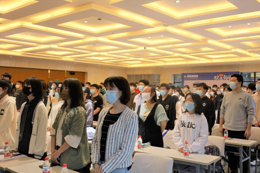 会议伊始,参会全体人员起立,奏唱中华人民共和国国歌。伴着神圣的国歌声,2022级新生见面会暨经理第一讲,正式拉开序幕。