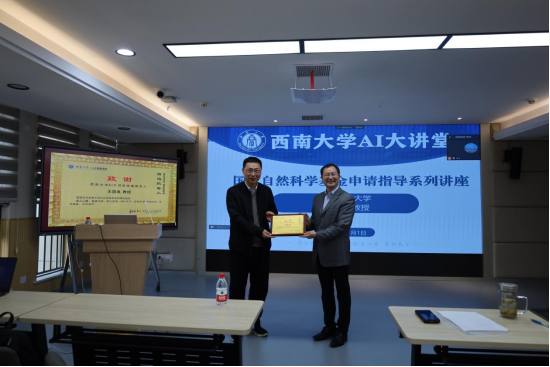 最后,段书凯经理向王国胤教授颁发了“350vip8888新葡的京AI大讲堂特邀报告人”致谢纪念牌,并对他的到来和精彩的报告表示衷心的感谢。