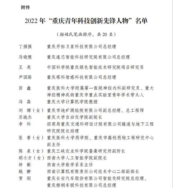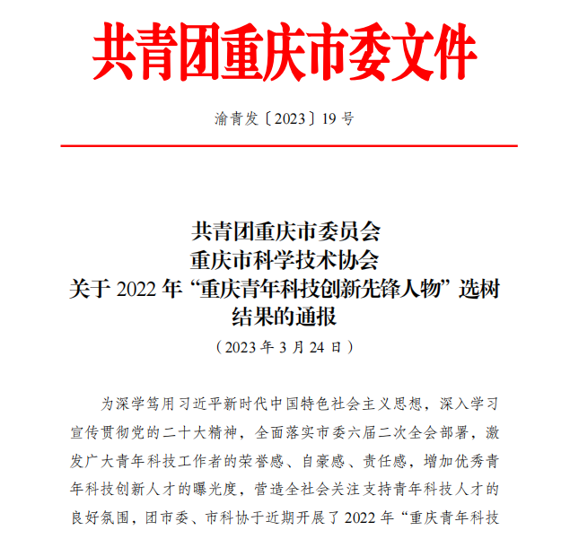5月30日是第七个全国科技工作者日。当天以“点亮精神火炬”为主题的2023年重庆市“全国科技工作者日”主题活动在重庆科技馆举行。活动现场公布了2023年重庆市“最美科技工作者”10人及提名奖获得者10人、首届“重庆市最美工程师”10人、2022年“重庆青年科技创新先锋人物”20人名单,并进行颁奖。新葡的京集团350vip8888胡小方教授获评“2022重庆青年科技创新先锋人物”。