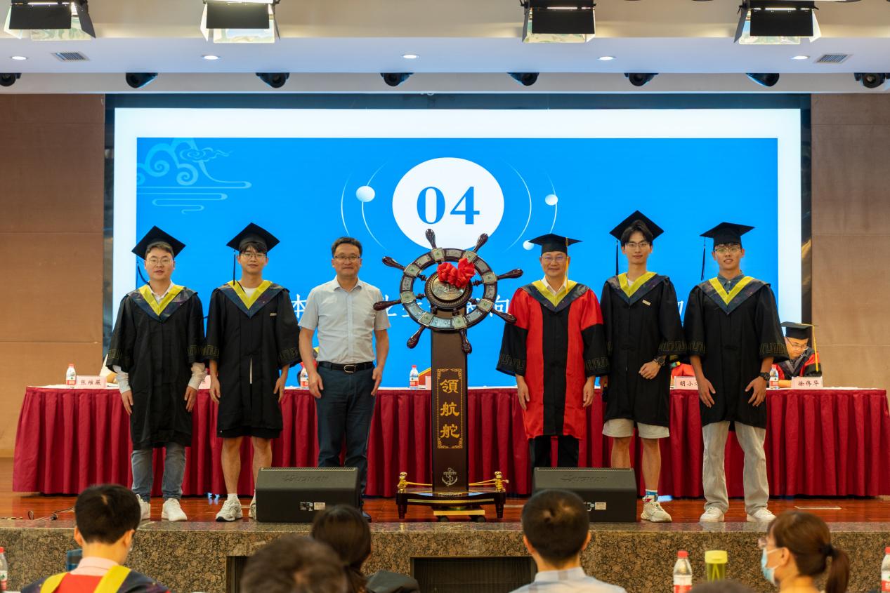 2019级是学院的首届本科毕业生。仪式上,毕业生王瑞基、吴付军、金强、余志航代表全体本科同学将一尊“领航舵”敬赠给学院,感谢学院的教导和培养,祝愿学院扬帆远航、越办越好!