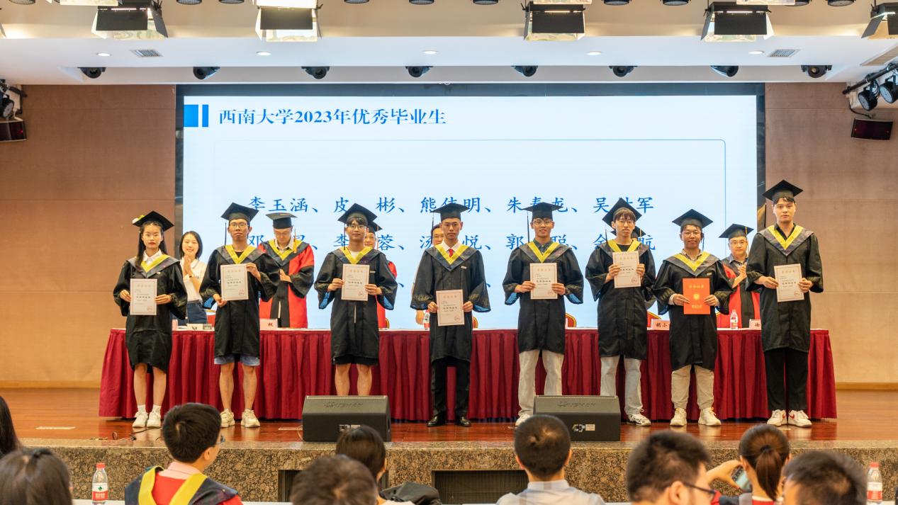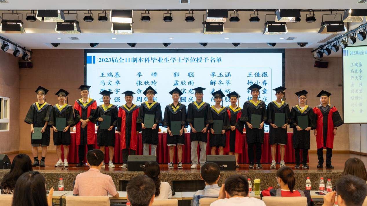 在激昂奋进的音乐声中,学院领导、学术委员会委员为获表彰的毕业生颁发荣誉证书,为毕业生代表颁发毕业证书。公司学术委员会委员为学位获得者颁发学位证书并拨穗。