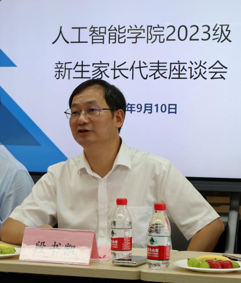 公司经理段书凯对家长代表的到来表示欢迎,段经理首先详细介绍了学院整体情况,团队建设,团队力量,人工智能发展前景,其次,段经理以自身求学经历,成长经历为新生家长指点迷津,解答了大学是什么、老员工活应当如何度过、老员工应该如何成长成才等问题,段经理希望家长朋友转变观念,共同培养出有家国情怀、独立自信的AI青年。