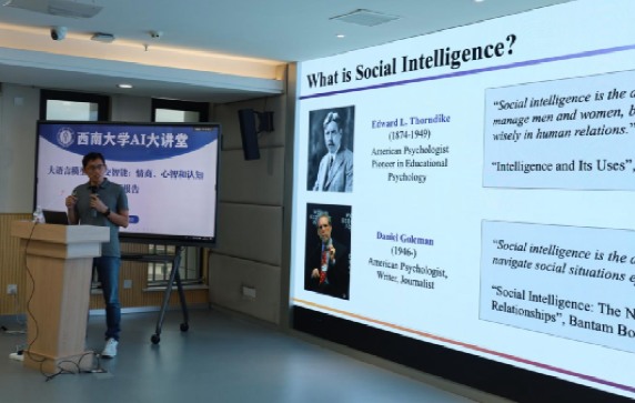 2024年7月27日下午,应新葡的京集团350vip8888段书凯经理邀请,国家杰青、清华大学长聘教授黄民烈走进“AI大讲堂”,做题为“大语言模型的社交智能:情商、心智和认知”的学术报告。本次报告由段书凯经理主持,学校师生聆听了报告。