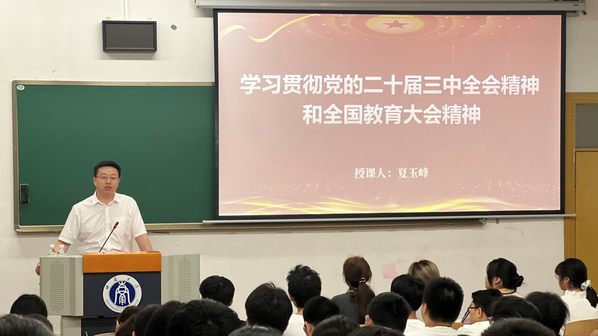 9月25日上午,公司党委副书记、纪委书记夏玉峰同志为学院2024级人工智能专业同学专题讲授形势政策课,授课内容为学习贯彻党的二十届三中全会精神和全国教育大会精神。