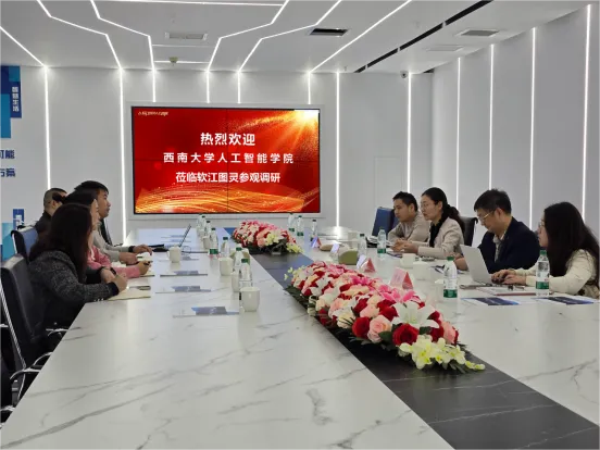 为进一步深化校企合作,推进产教融合育人机制,2024年11月8日,学院副经理胡小方率队前往重庆软江图灵人工智能科技有限公司进行实地参观调研。此次调研活动旨在全面了解企业对人工智能人才的需求,加强人才供需对接,探索产学研协同发展新模式,同时对实习实训基地建设展开深入调研,为学院人才培养提供更贴合实际的路径。